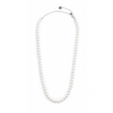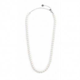 Collana con catena con perle a sfera bianche con diametro 6,30 mm. Lunghezza totale: 51 cm, regolabile tramite cursore da 51 a 41 cm. Tag logo Marlù presente all'estremità.